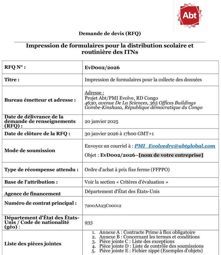 Demande de devis (RFQ) Impression de formulaires pour la distribution scolaire